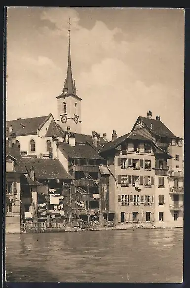 AK Alt-Bern, Nydeck, Alte Häuser an der Aare
