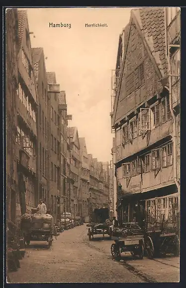 AK Alt-Hamburg, Herrlichkeit, Strassenpartie mit Kutschen