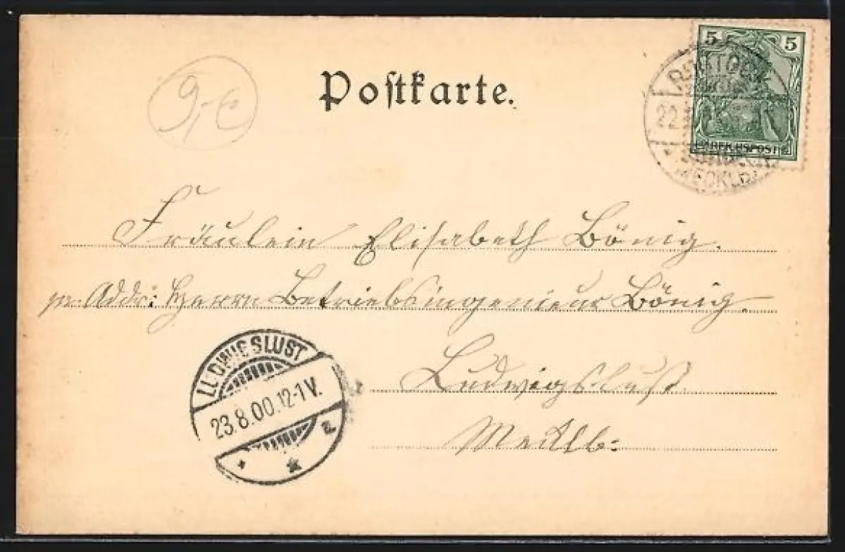 alte Ansichtskarte, gelaufen 1900, guter Zustand