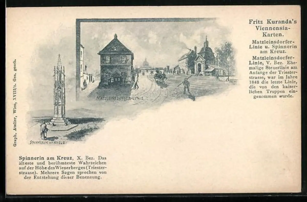 AK Alt-Wien, Matzleinsdorfer-Linie und Spinnerin am Kreuz