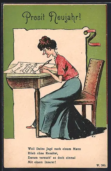 AK Alte Jungfer schreibt ein Inserat