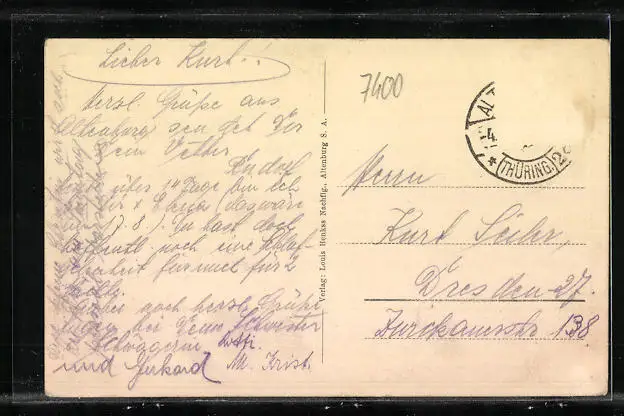 alte Ansichtskarte, gelaufen, Briefmarke entfernt, guter Zustand