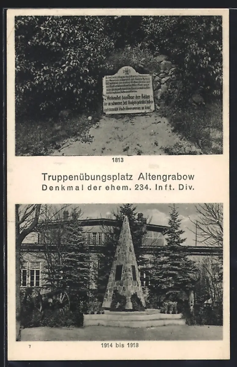 AK Altengrabow, Truppenübungsplatz, Denkmal der ehem. 234. Infanterie-Division 1813 und 1914-1918