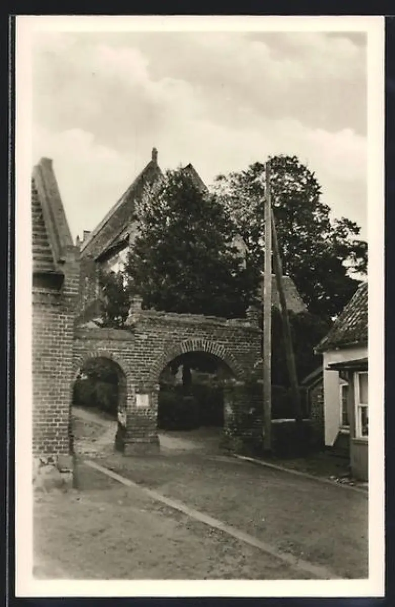 AK Altenkirchen / Rügen, Blick auf Torbogen und Kirche