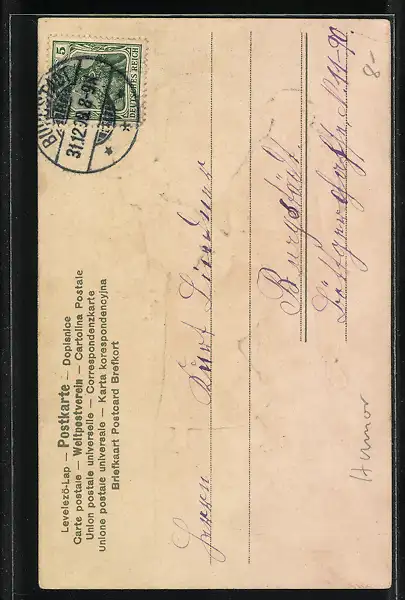 alte Ansichtskarte, gelaufen 1909, Eckknick li. oben, guter Zustand