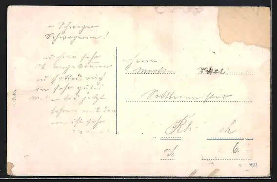 alte Ansichtskarte, gelaufen, Briefmarke entfernt, rückseitig Oberflächenschaden, Eckknicke li., guter Zustand