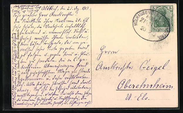 gelaufen 1913, guter Zustand