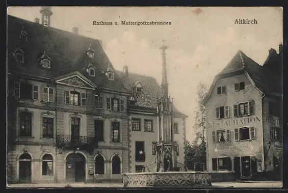 AK Altkirch, Rathaus mit Restaurant und Muttergottesbrunnen