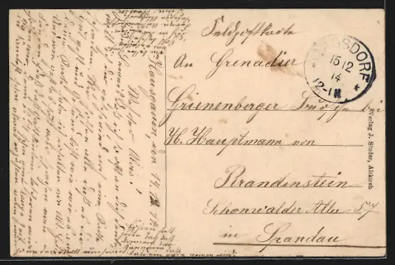 alte Ansichtskarte, gelaufen 1914, Eckknick li. oben, guter Zustand