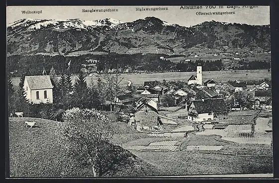 AK Altstätten /Bayr. Allgäu, Blick auf den Ort mit Weibeskopf, Sigiswangerhorn