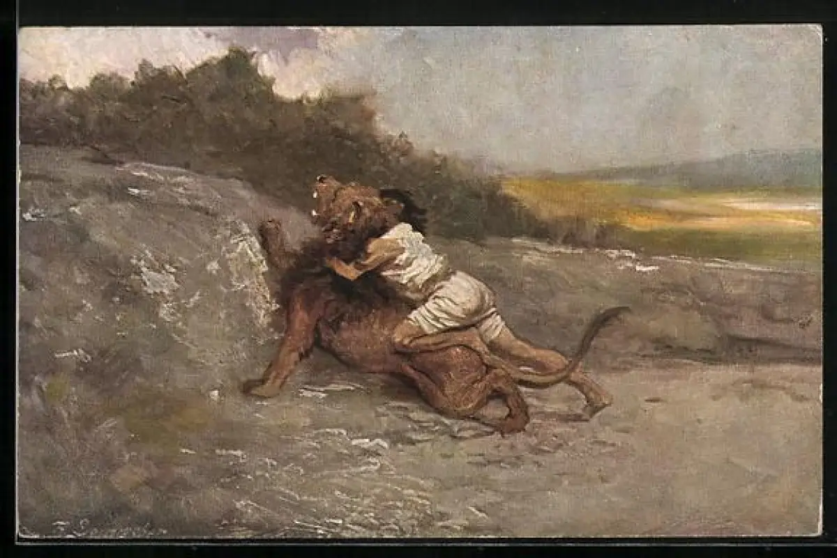 AK Alttestamentische Bilder, Simson tötet einen Löwen