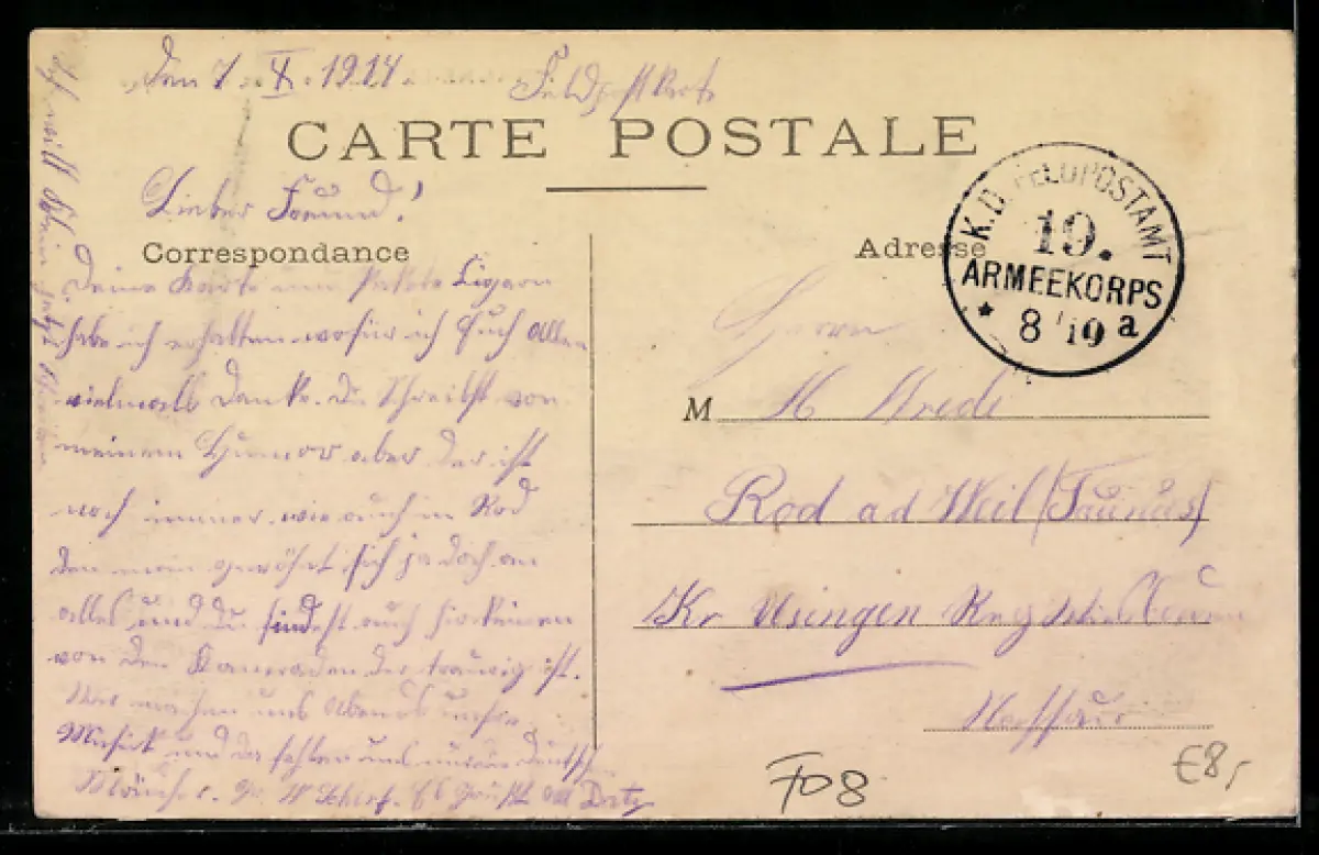 gelaufen 1914, Eckknick re. oben, guter Zustand