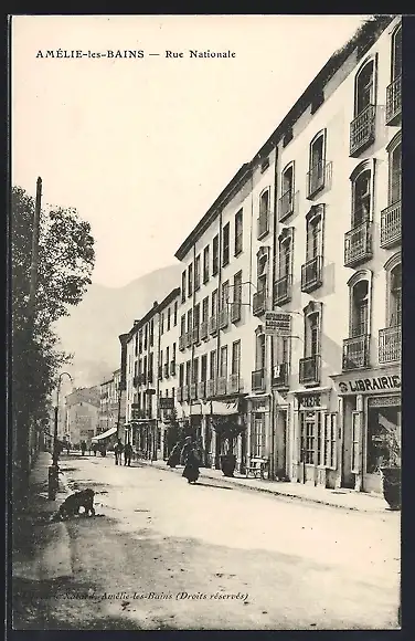 AK Amélie-les-Bains, Rue Nationale avec immeubles et commerces