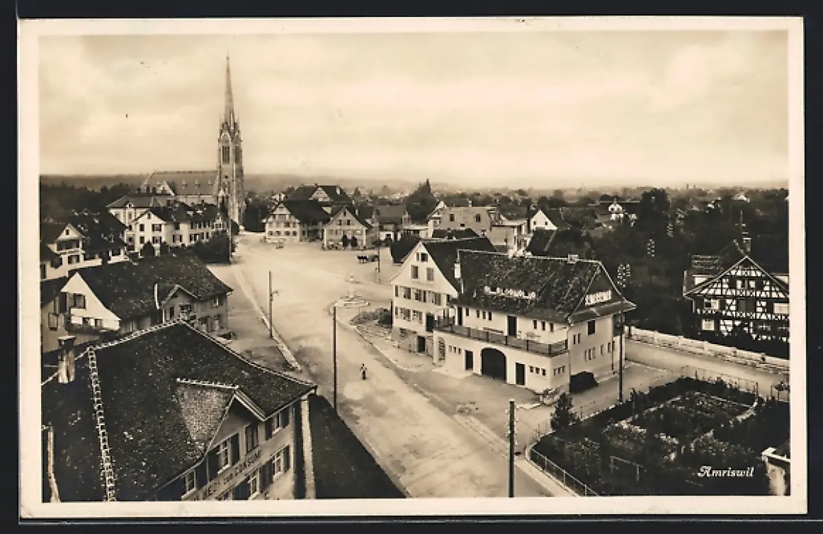 AK Amriswil, Teilansicht mit Gasthaus zum Ochsen aus der Vogelschau