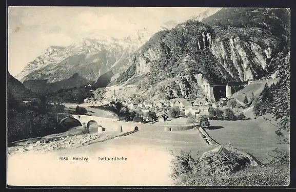 AK Amsteg, Partie an der Gotthardbahn