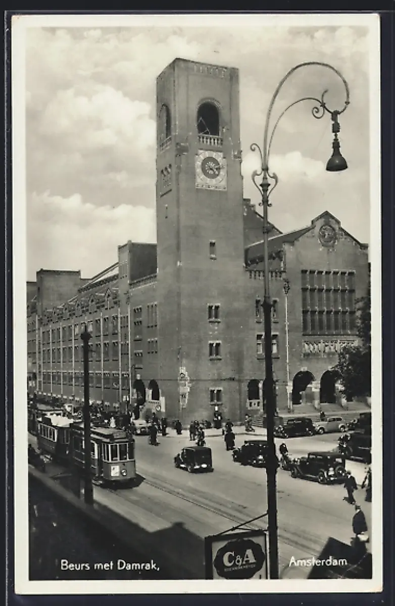 AK Amsterdam, Beurs met Damrak, Strassenbahn