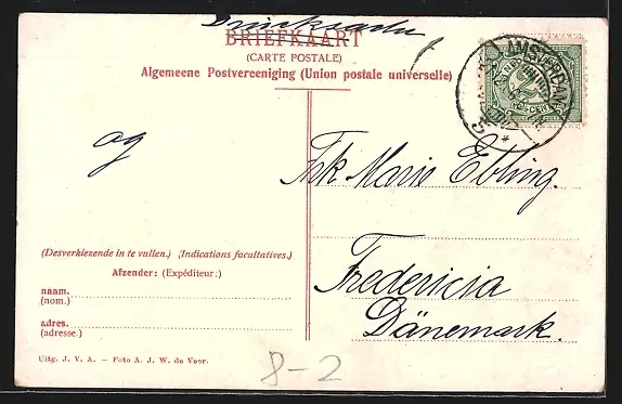 Personenbezogene Daten auf der Rückseite der Karte wurden durch blauen Textmarker unkenntlich gemacht. Die blauen Stellen sind auf die Vorderseite durchgeweicht und wirken sich negativ auf das Postkartenfoto aus