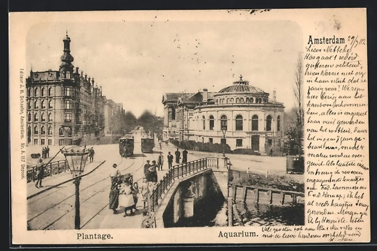 AK Amsterdam, Plantage, Aquarium, Pferdebahn