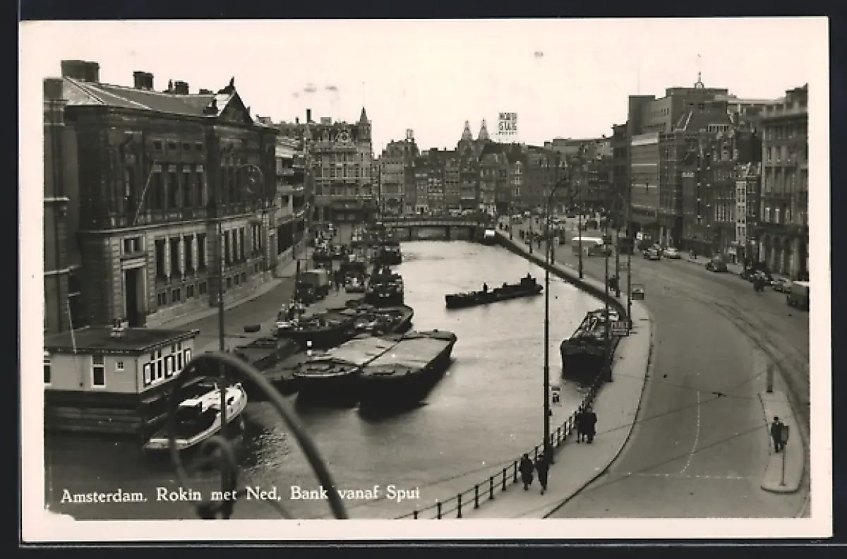 AK Amsterdam, Rokin met Ned, Bank vanaf Spui