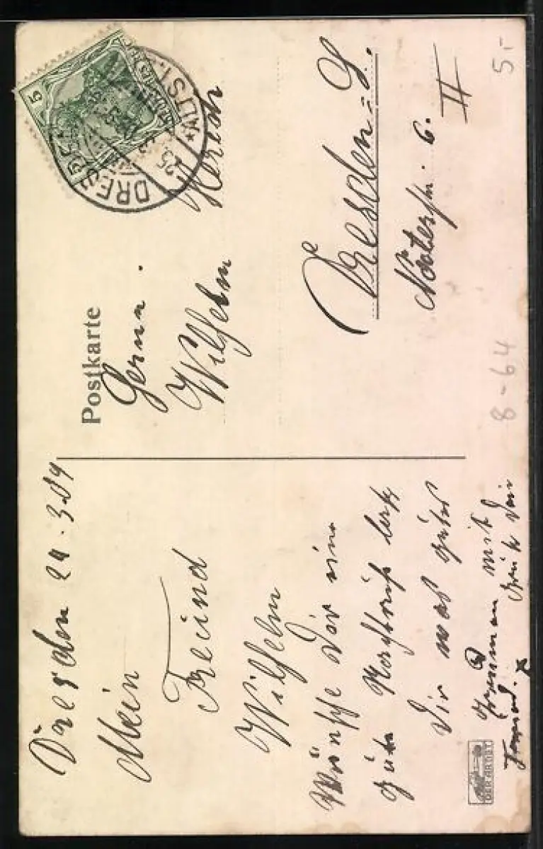 alte Ansichtskarte, gelaufen 1909, guter Zustand