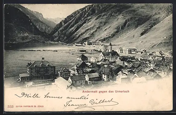 AK Andermatt, Ortsansicht mit dem Urnerloch, um 1900