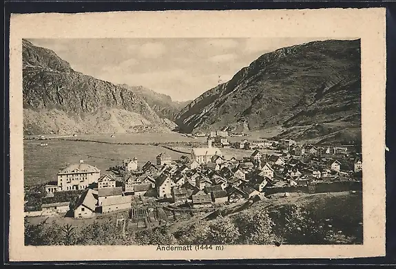 AK Andermatt, Teilansicht mit Bergen