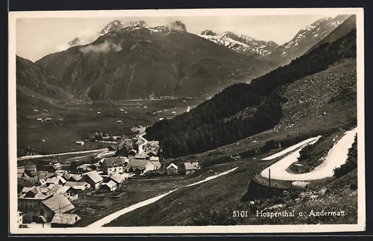 AK Andermatt, Teilansicht mit Hospenthal