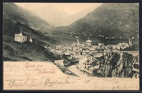 AK Andermatt, Teilansicht mit Kirche