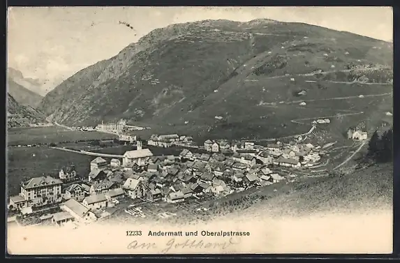 AK Andermatt, Teilansicht mit Oberalpstrasse