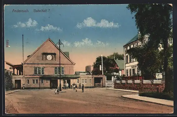 AK Andernach, Bahnhof mit Strassenpartie