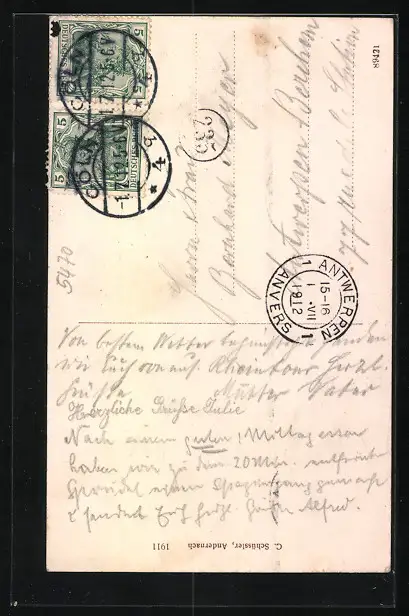 gelaufen 1912, Stempelspur, guter Zustand