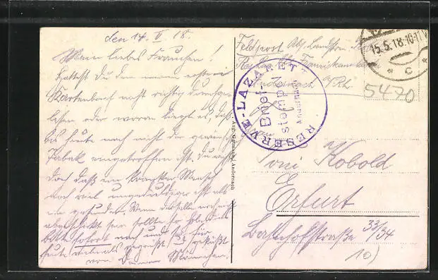 alte Ansichtskarte, gelaufen 1918 als Feldpost, leicht fleckig, sonst guter Zustand