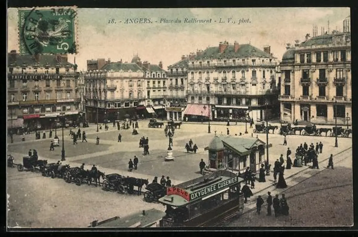 AK Angers, Place du Ralliement, Strassenbahn