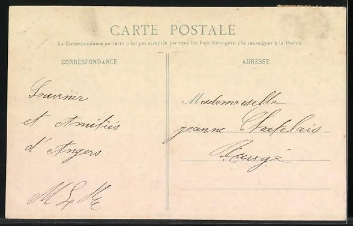 Personenbezogene Daten auf der Rückseite der Karte wurden durch blauen Textmarker unkenntlich gemacht. Die blauen Stellen sind auf die Vorderseite durchgeweicht und wirken sich negativ auf das Postkartenfoto aus