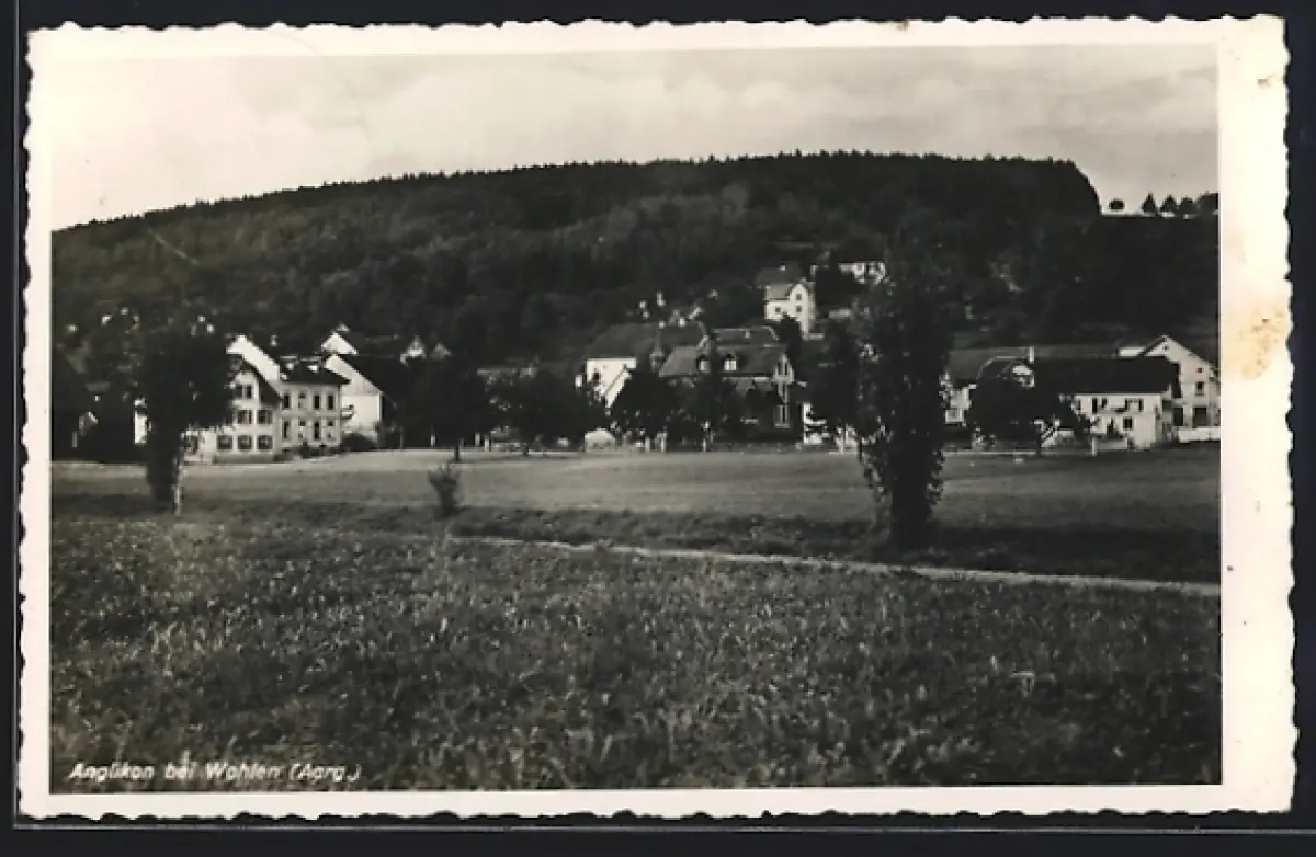 AK Anglikon bei Wohlen, Ortspartie mit Bäumen