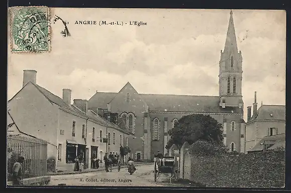AK Angrie, Vue de l`église et de la rue animée