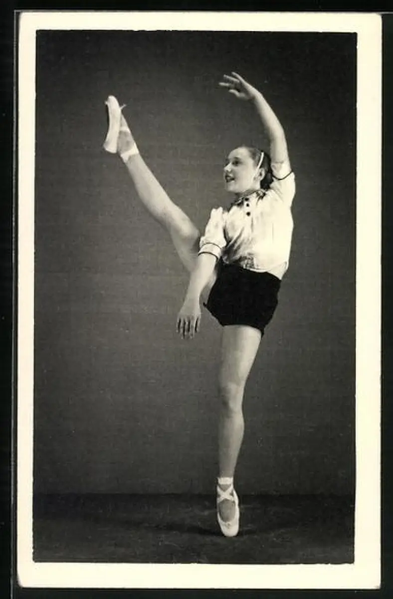 AK Anneliese Scheer, Balletttänzerin in Tanzpositur, rückseitig Autograph