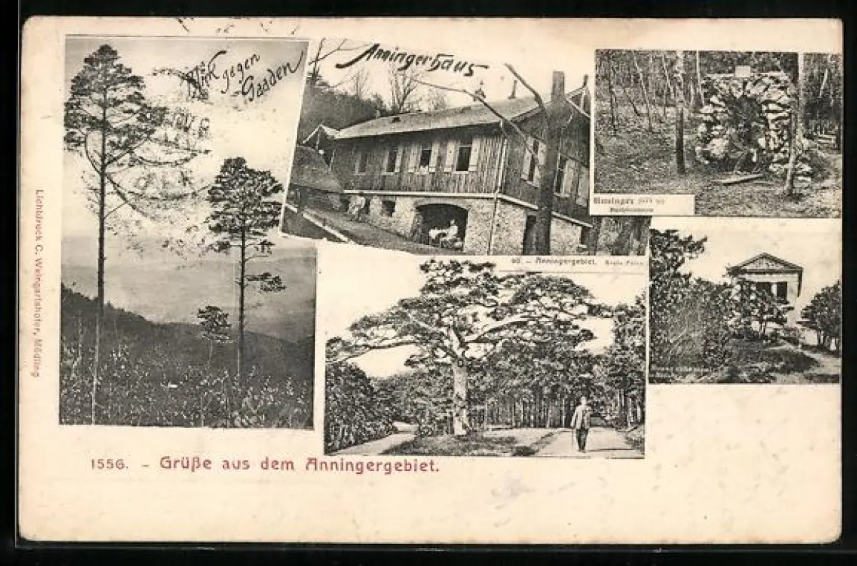AK Anningerhaus, Buchtbrunnen, Husarentempel in Mödling