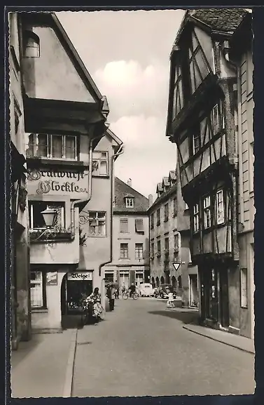 AK Ansbach /Bayern, Gasthaus Bratwurst-Glöckle und alte Fachwerkhäuser in der Uz-Strasse
