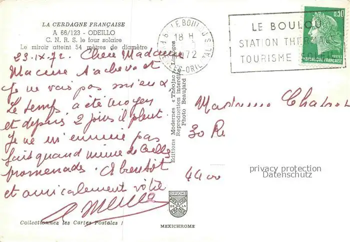 carte postale 14012470 Odeillo Font-Romeu Prades 66 Pyrenees-Orientales CNRS le four solaire Le miroir atteint 54 metres de diamere postalisch gelaufen Erhaltung siehe scans [WerneD78]