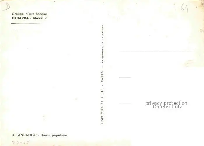 14018965 Oldarra BIARRITZ 64 Pyrenees Atlantiques Groupe d'Art Basque le Fandanbo danse populaire postalisch nicht gelaufen Erhaltung siehe scans [FriedD77]