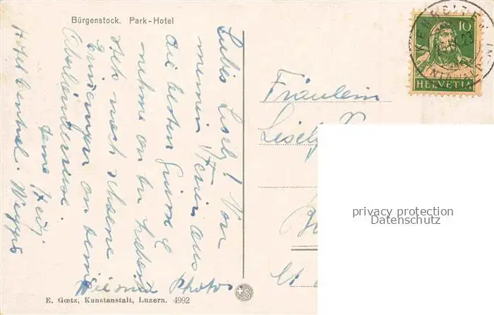 alte Postkarte 14021238 Buergenstock Vierwaldstaettersee NW Park Hotel postalisch gelaufen Erhaltung siehe scans [WerneD78]