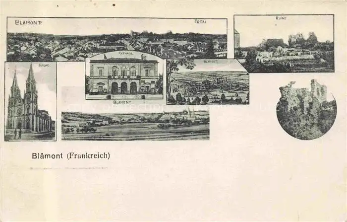 carte postale 14021631 Blamont Luneville 54 Meurthe-et-Moselle Panorama Kirche Rathaus Ruine postalisch gelaufen Feldpost - Stempel Erhaltung siehe scans [WerneD78]