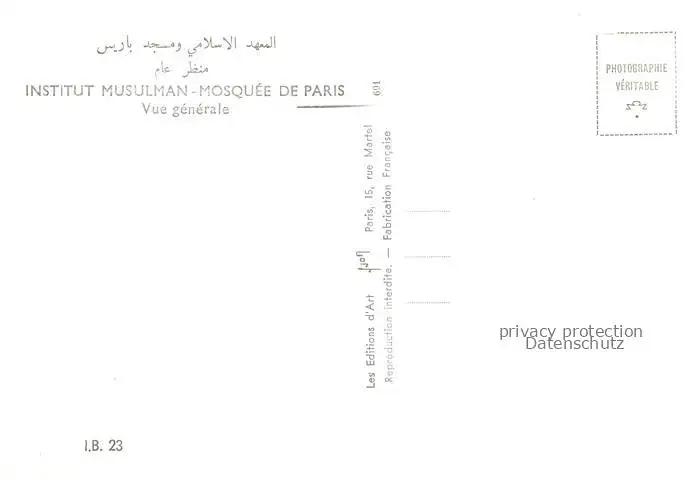 14026415 PARIS 75 Institut Musulman Mosquée de Paris postalisch nicht gelaufen Erhaltung siehe scans [FriedD77]