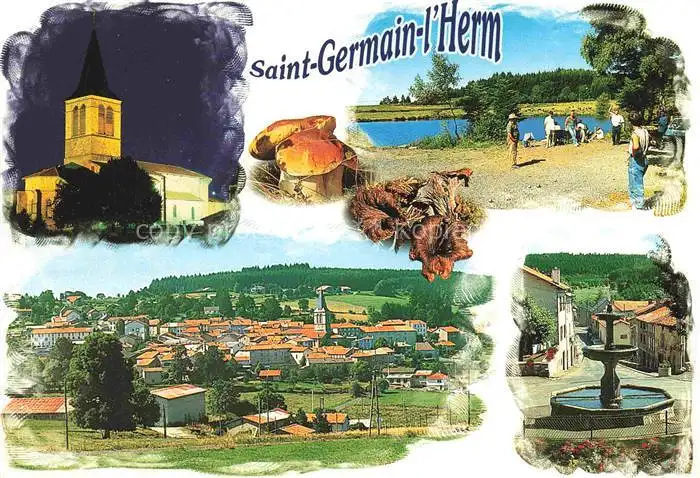 carte postale 14028550 Saint-Germain-l Herm Eglise Etang de Lallabert vue générale Fontaine postalisch gelaufen Erhaltung siehe scans [FriedD77]