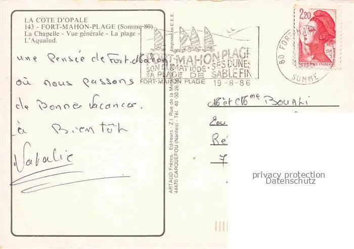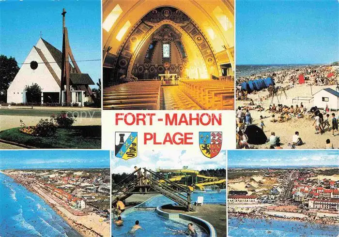 carte postale 14028588 Fort-Mahon-Plage 80 Somme Chapelle vue générale aérienne Plage Aqualud postalisch gelaufen Erhaltung siehe scans [FriedD77]