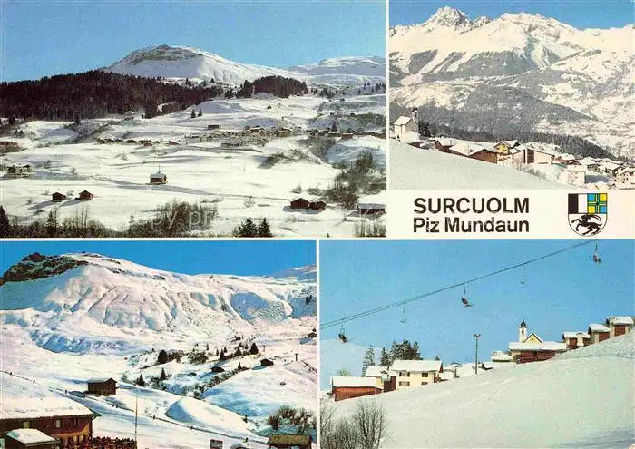 AK / Ansichtskarte 14029450 Surcuolm Panorama Skigebiet Piz Mundaun