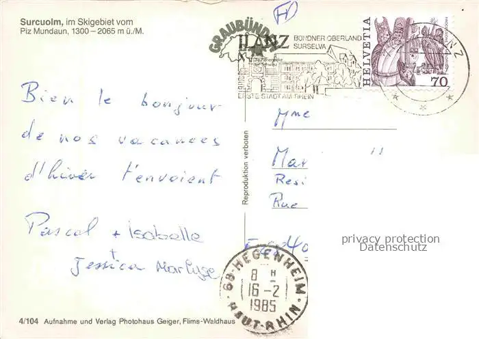 alte Postkarte 14029450 Surcuolm Panorama Skigebiet Piz Mundaun postalisch gelaufen Erhaltung siehe scans [FriedD77]