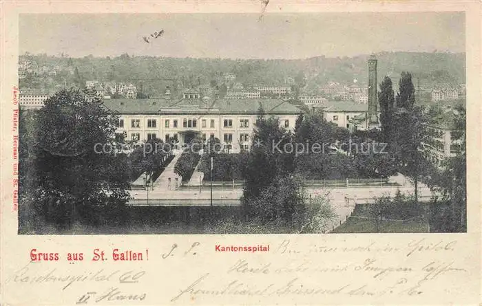 alte Postkarte 14032755 St Gallen SANKT GALLEN SG Kantonsspital postalisch gelaufen Erhaltung siehe scans [WerneD78]