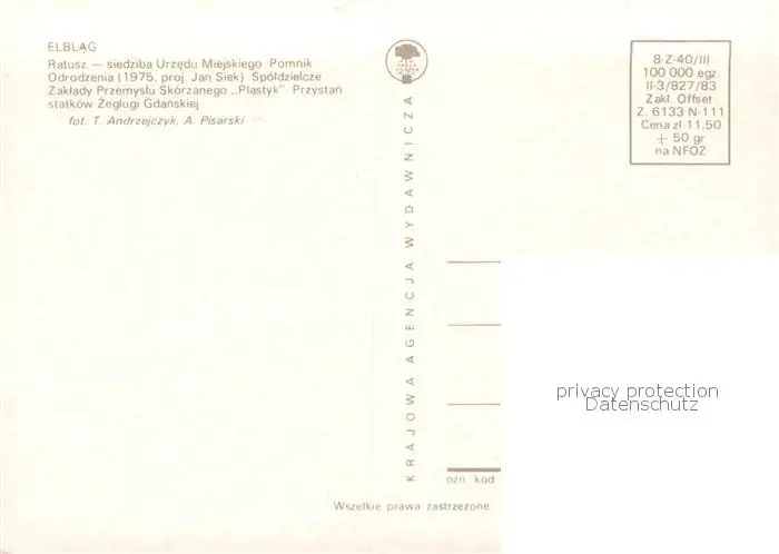 73796750 Elblag_Elbing_PL Ratusz Spoldzielcze Zaklady Przemyslu Skorzanego Plastyk Przystan statkow Zeglugi Gdanskiej postalisch nicht gelaufen nach 1965 Erhaltung siehe scans [WerneD78] [WernPID7 ]